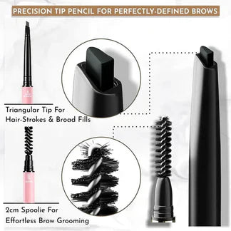 - Dual-sided design with a retractable pencil and eyebrow brush for easy styling and filling